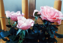 母の日にプレゼントしたピンクのバラ「コモ」と、自宅で育てているエビネの写真を掲載しました。